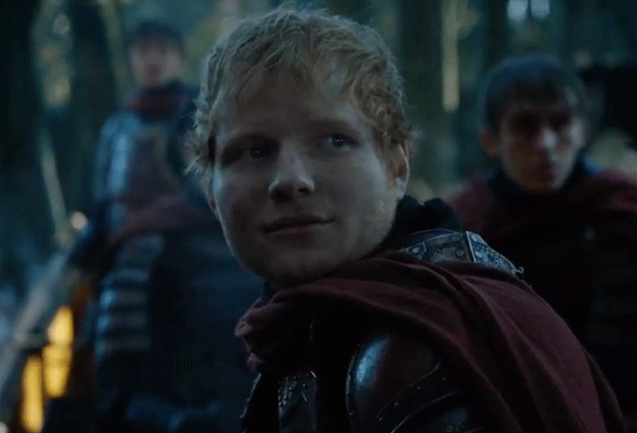 O músico Ed Sheeran fez uma participação especial em uma cena com Arya Stark (Maisie Williams) cantando uma música chamada ‘Hands of Gold’.