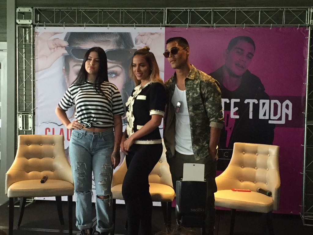 Durante a coletiva, Anitta revelou que por não estar totalmente inserida no meio, ela fez uma espécie de laboratório com Clau. Fez ela participar de shows e meet & greets para ela entender como funciona.