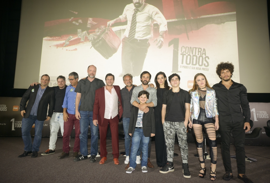 O Elefante Voador teve a oportunidade de assistir ao primeiro episódio da segunda temporada de Um Contra Todos no Cine Sala, em São Paulo. E participamos do evento onde estiveram presentes os executivos da FOX Networks Group Brasil (FNG) Michel Piestun, Zico Goes, Sergio Domanico, assim como o diretor geral da série Breno Silveira e o diretor Daniel Lieff, os autores Thomas Stavros e Gustavo Lipsztein, além dos protagonistas Julio Andrade (Cadu) e Julia Ianina (Malu), e ainda Roberto Birindelli (Pepe), Thogun Teixeira (China), João Fernandes (Teo), Bernardo Alves (Carlinhos), Willean Reis (Zevio) e Brenda Sabryna (Liliana).