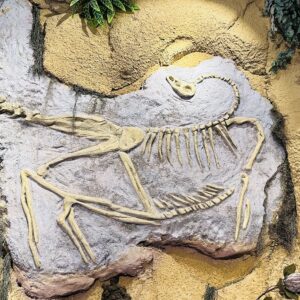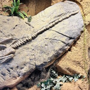 A visita ao parque começa com uma exposição de fósseis de organismos anteriores ao surgimento dos vertebrados como os conhecemos; de répteis ancestrais e dos animais que deram origem aos mamíferos.