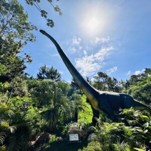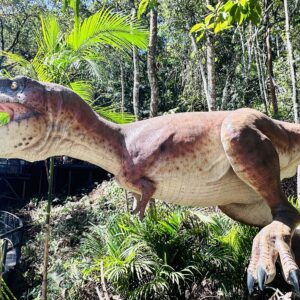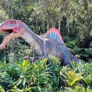 As mais antigas são as espécies brasileiras, entre elas o Macrocollum, o Pampadromadeus e o Buriolestes. O maior dinossauro do parque é do período Cretáceo: o Argentinossauro, com cerca de 35 metros de comprimento e dez de altura, que tem como vizinho um imponente T-Rex, com seus 25 metros de comprimento e 8 metros de altura.