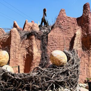 Ovos de Dinossauros são bastante raros em praticamente todo o mundo. Contudo, há na China a Bacia de Xixia, onde soterramentos, provocados por enxurradas, acabaram por cobrir ninhos inteiros de dinossauros, alguns em suas posições originais de postura. Esta condição preservou de forma excepcional estes ovos, como é o caso do exemplar exposto no Parque. Através também destes ovos sabe-se que possuíam casca bastante resistente, ainda mais fortes que os atuais ovos de avestruz, seus descendentes naturais.
