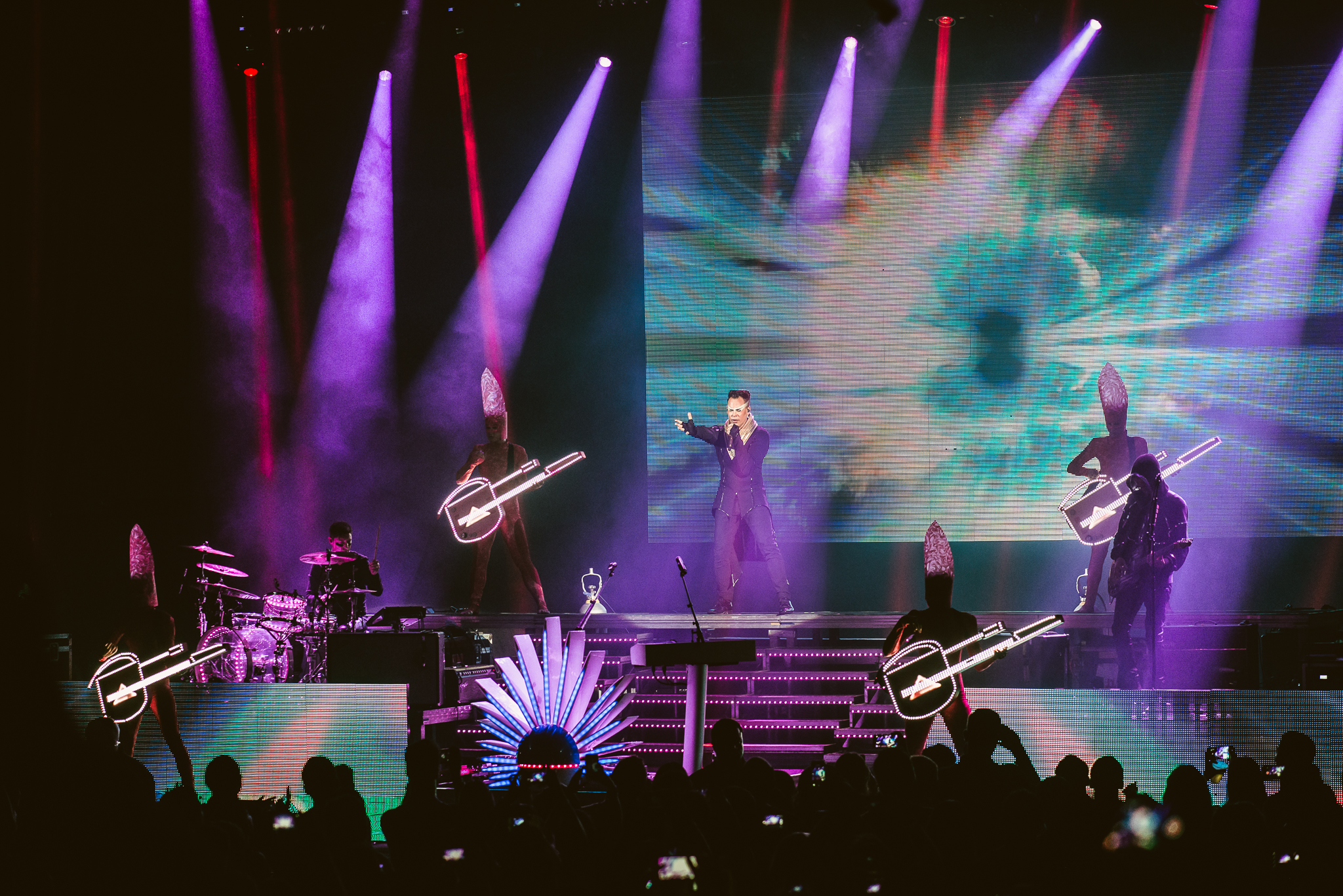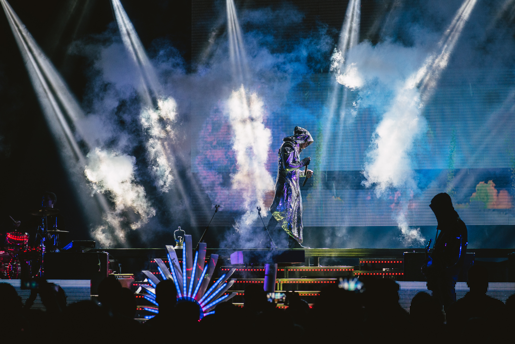 Empire of the Sun esteve no palco da Fundição Progresso, neste domingo, trazendo um show performático, com muito jogo de luzes, além de figurinos e cenário futurísticos.
