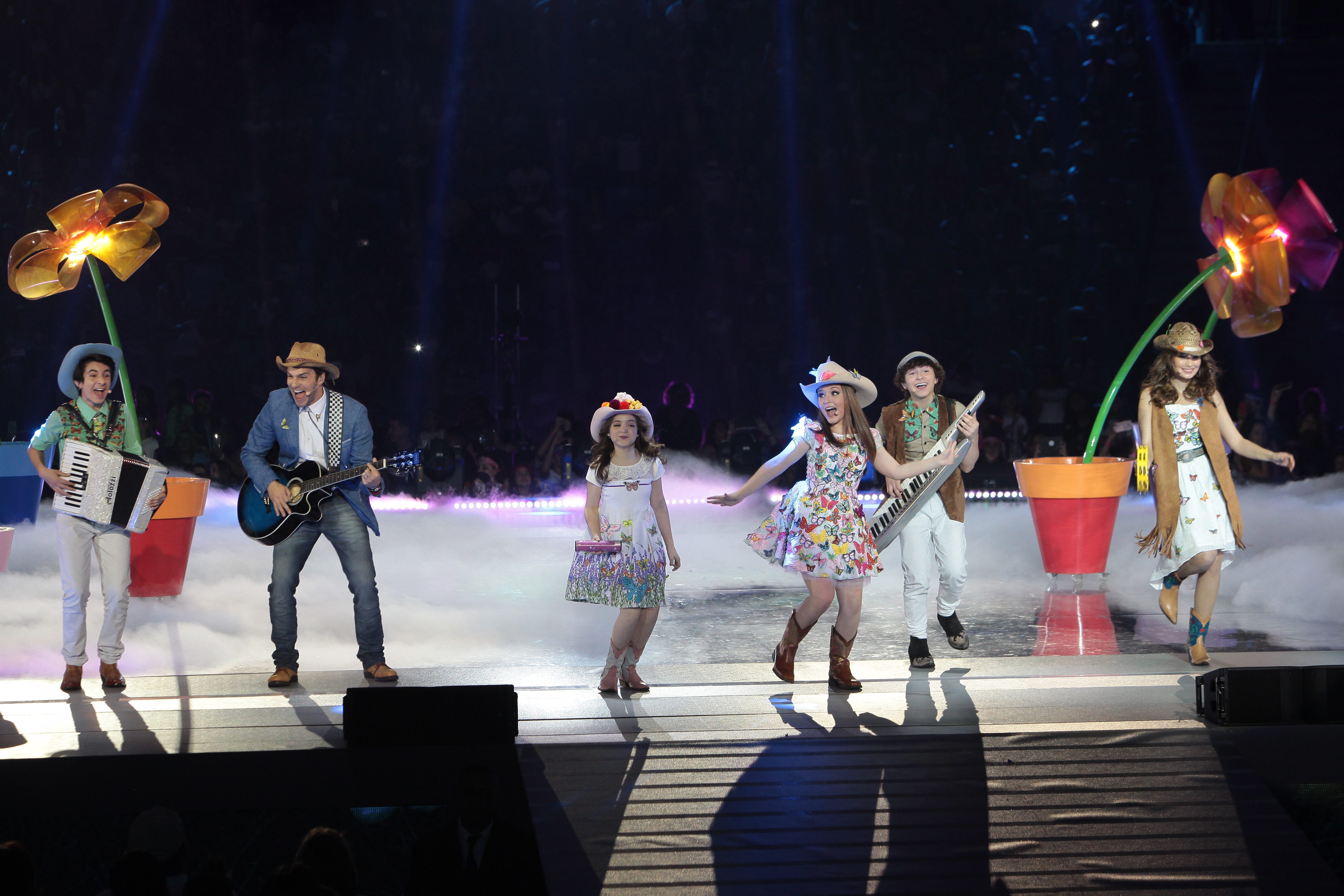 Larissa Manoela, que na novela interpreta as gêmeas Isabela e Manuela, comanda a banda e o show, interagindo com o público, sempre com centenas de fãs vestidos como suas personagens.  As outras duas bandas formadas na novela, a Insanos e a Manuela e seus Amigos, também são atrações no show.