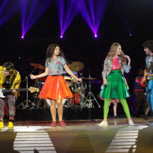 O elenco do espetáculo conta com os atores da novela (15 crianças e 11 adultos), que se apresentam como seus personagens, e cantam 22 músicas diferentes, todas da trilha sonora da novela. Entre os sucessos estão: “Pra Ver Se Cola”, “Na Hora H”, “SuperStar”, “Contigo Sempre” e “Terra de Gigantes”.