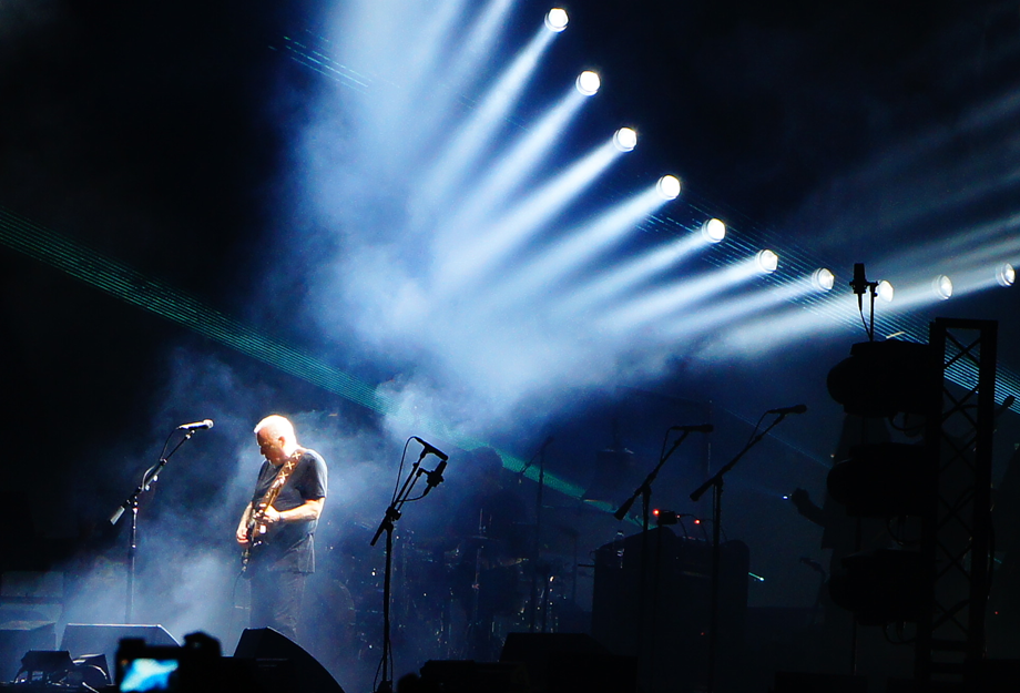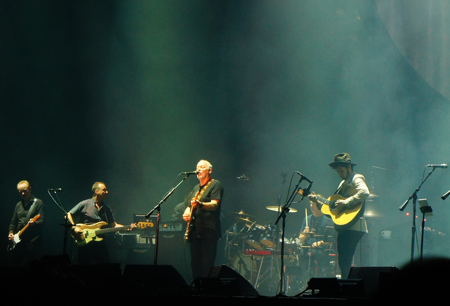 Com um concerto divido em dois atos, o Allianz Parque se dividiu em uma noite digna de um grande espetáculo teatral, transformando o estádio em um show de interpretações, arte e cenografia aplicada ali naquele palco. Por volta de 21h20 Gilmour começa com o instrumental “5 A.M.”, do seu novo álbum Rattle That Lock, seguido de “Faces Of Stone”, que faz parte do mesmo trabalho.