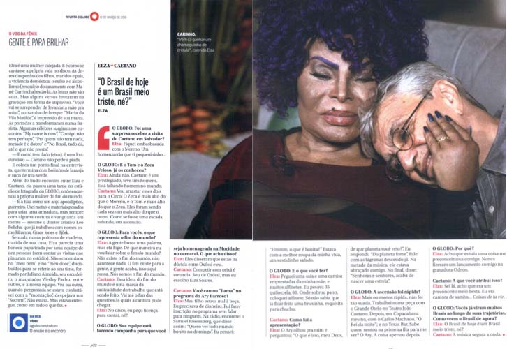 “Para Elza, Caetano é um ‘anjo da guarda’. Para Caetano, Elza é uma cantora muito inteligente: ‘Me identifico com a sua vocação para a lucidez’, diz ele.”