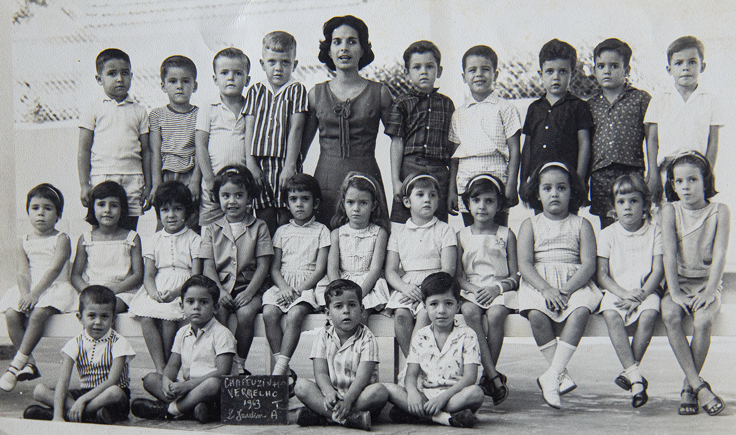Cazuza é o segundo, da esquerda para a direita, da primeira fila. Bial está à esquerda da professora
