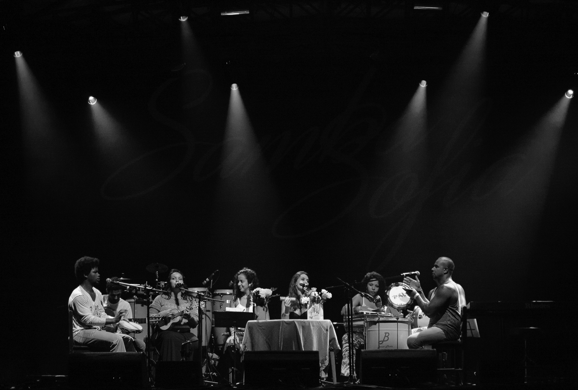 A abertura da noite ficou por conta do Sambasofia, grupo composto por oito musicistas – quatro mulheres e quatro homens – dispostos com seus instrumentos ao redor de uma pequena mesa com arranjos florais, reproduzindo o ambiente de uma legítima roda de samba.