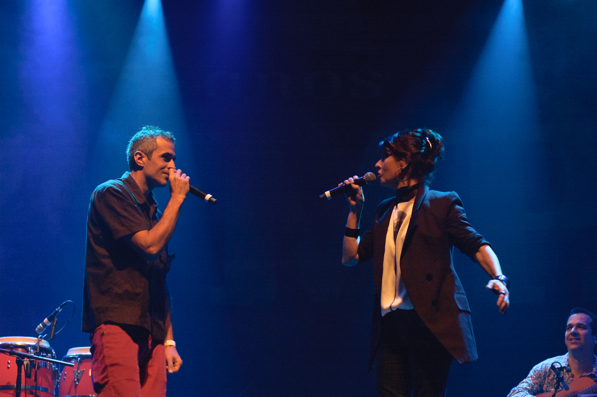 Após breve apresentação instrumental do Trio, foi a vez de Fernanda Abreu se unir a eles. A pedido de João Mário Linhares, fundador da MP,B Produções, a cantora inicialmente emprestou voz à canção “Samba e Amor”, de Chico, e depois prosseguiu com sua versão de “Tudo Vale a Pena” -parceria com Pedro Luis, que também a executara com sua banda na véspera. Aproveitando a deixa das parcerias, o cantor e compositor Rodrigo Maranhão fez sua primeira aparição na noite ao lado do Trio Madeira Brasil e de Fernanda para sacudir a Lapa com “Baile da Pesada”, hit da dupla. Na sequência, Maranhão somou seu cavaquinho ao Trio em “Recado” e “Caminho das Águas” – esta última com Zé Renato, aparentemente quebrando o protocolo em meio a sorrisos descontraídos.