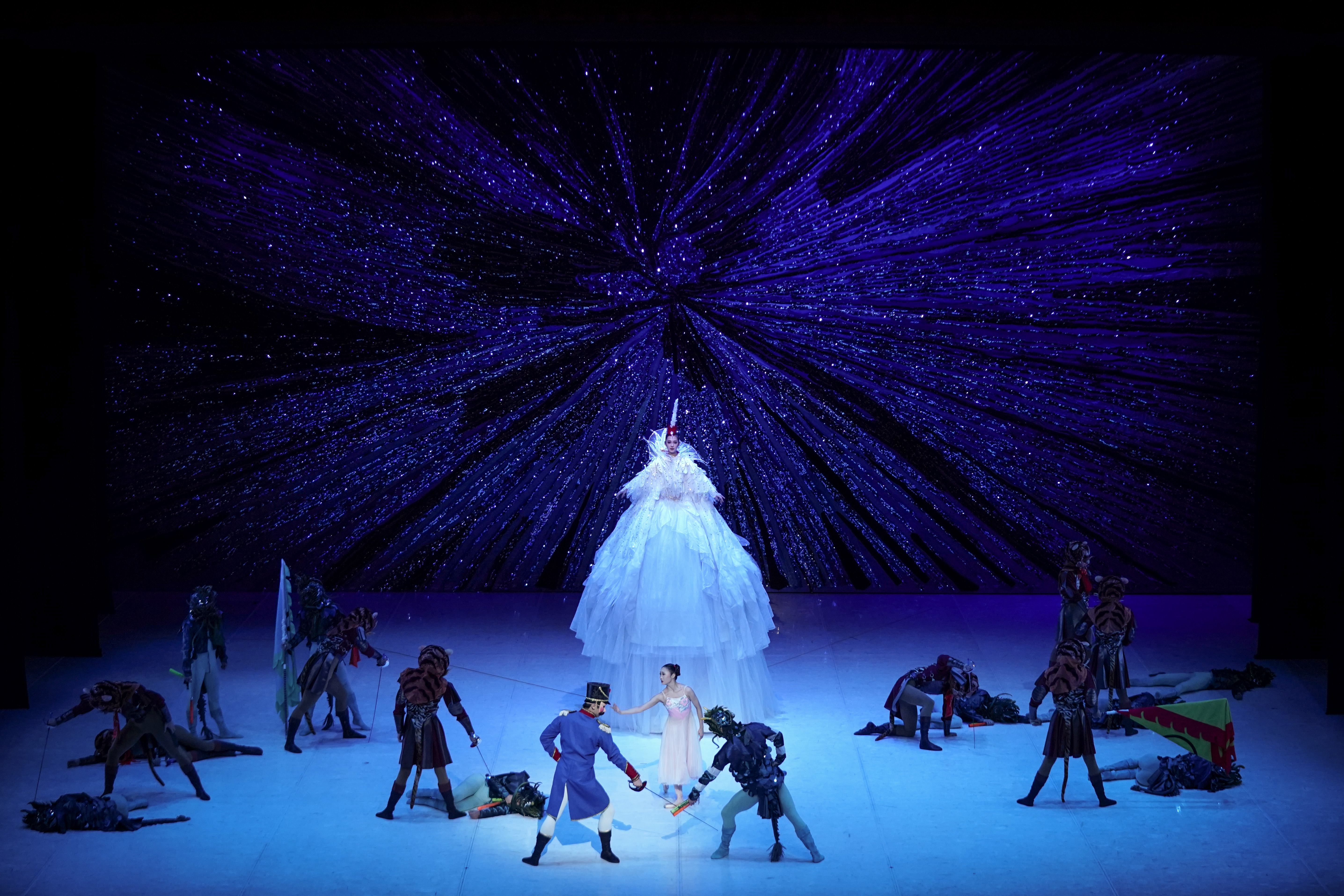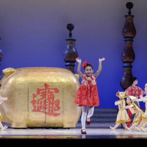 Com mais de 60 bailarinos em cena, figurinos exuberantes e cenários grandiosos, o espetáculo transforma o Natal europeu em uma celebração vibrante do Ano Novo Chinês. Nesta montagem única, a história é conduzida pela trilha original de Tchaikovsky, agora ambientada em uma tradicional feira de Pequim, na véspera do Ano Novo Lunar. Símbolos como os doze animais do zodíaco, lanternas vermelhas e criaturas do folclore chinês transformam o clássico em uma jornada encantada entre realidade e sonho.