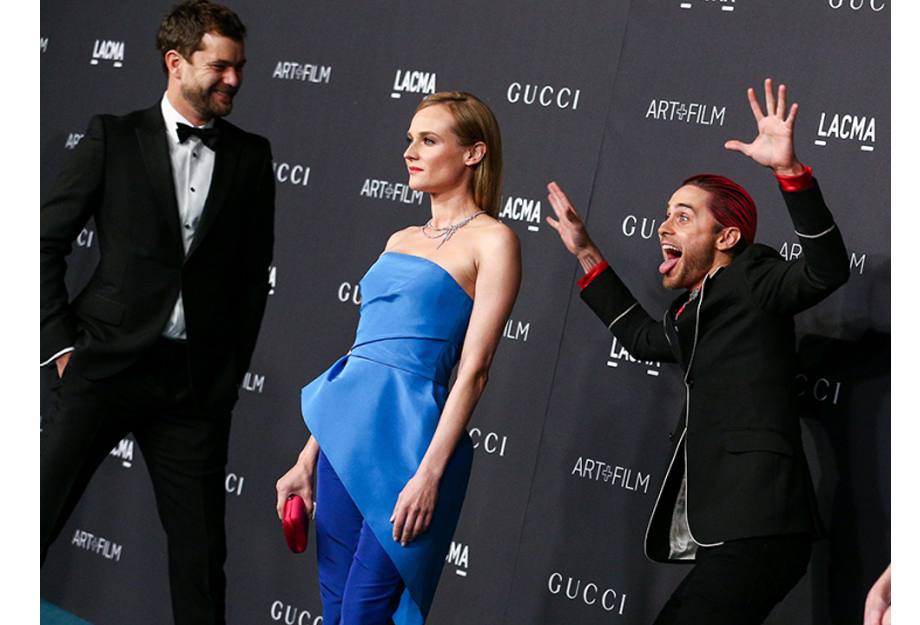 No sábado (07) aconteceu o LACMA’s 2015 Art+Film Gala, e o evento estava recheado de personalidades do cinema e da música. Entre eles Jared Leto, nada discreto com camisa e cabelos vermelhos (da cor do tapete). Não satisfeito com suas fotos no Red Carpert, Jared resolveu fazer um “Photobomb” enquanto Diane Kruger posava, toda diva, para as lentes dos fotógrafos.  O ator Joshua Jackson parece ter se divertido com a “pegadinha” para sua namorada.