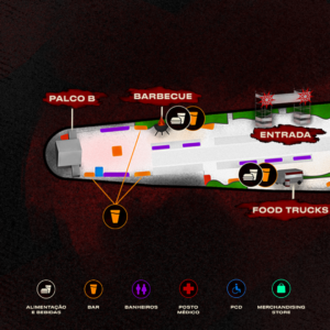 Confira o mapa detalhado do festival que contará com 10 bandas, 2 palcos, 12 horas de festival, o Knotfest Museum, churrasco sendo feito na hora, área de Food Truck e uma Arena Radical cheia de surpresas para todos!