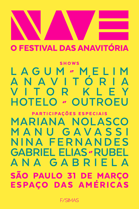 Está chegando! A primeira edição do NAVE, o festival do duo Anavitória, acontece no dia 31 de março de 2019, no Espaço das Américas, em São Paulo. E, como uma nave-mãe, elas abraçam outros jovens artistas que começam a trilhar caminhos parecidos com o delas.