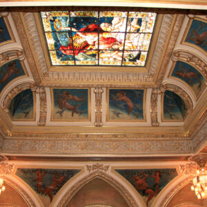 A visita se encerra no restaurante Assyrio, onde acontece até o dia 20 de fevereiro a exposição ‘O Centenário de uma Joia’, promovida pela Firjan. A mostra é composta por um total de 40 peças, entre anéis, colares e pulseiras, criadas em ouro, prata e pedrarias por 40 jovens designers – dentre alunos e docentes da Escola de Joalheria do Senai -, que se inspiraram nos luxuosos detalhes que compõe a arquitetura do TM, como o cintilar de seus lustres, os ornatos dourados das paredes e o parquet do piso. A saída será pelo Boulevard, o jardim do Theatro, novo espaço criado durante a reforma, com acesso para a Av. 13 de maio.