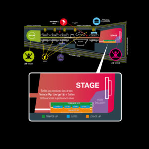 Os ingressos de pista vip oferecem bebidas (água, Cerveja, Refrigerante, Energético, Vodka e Whisky) e comidas.