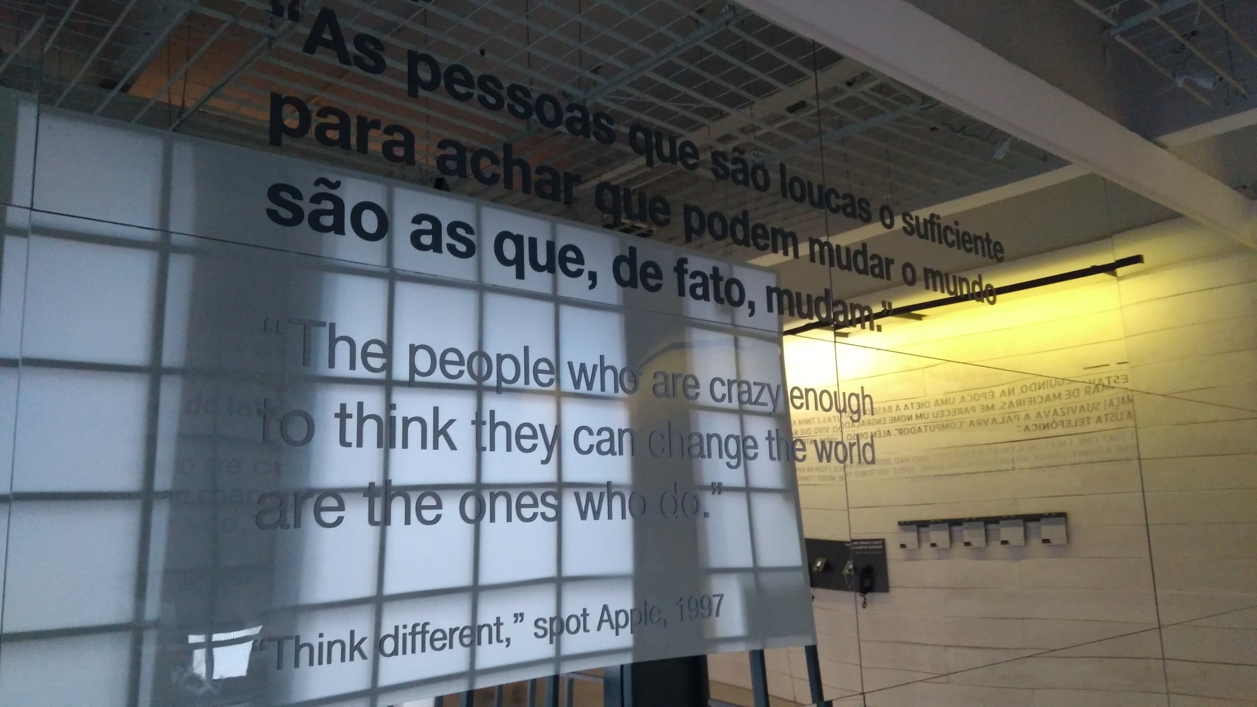 Os grandes feitos de Steve Jobs, inclusive a criação da Pixar, que é uma das produtoras mais lucrativas do cinema americano, estão por todos os lugares da exposição. Isso sem falar nos produtos: lá se vê não apenas o Macintosh, que conquistava o mundo em 1984, mas também um vídeo que mostra a sua composição.