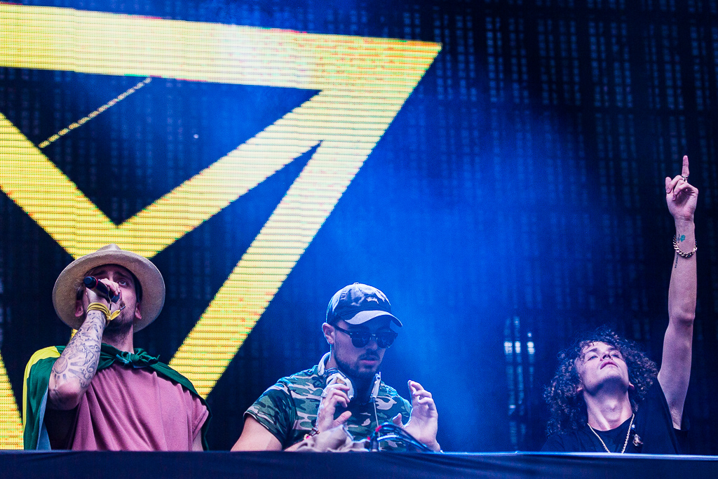 Depois de Manu, foi a hora de uma apresentação do jogo Just Dance, para distrair o público enquanto o palco da próxima atração era montada. Era a banda eletrônica Cheat Codes, que agitou o público com remix de músicas como “This Is What We Came For” e seu maior sucesso, a música “Sex”. Os DJs Matthew Russell, Trevor Dahl e Kevin Ford saíram apaixonados pelo Brasil e fizeram diversas graças no palco, até interagiram com a plateia descendo do palco.